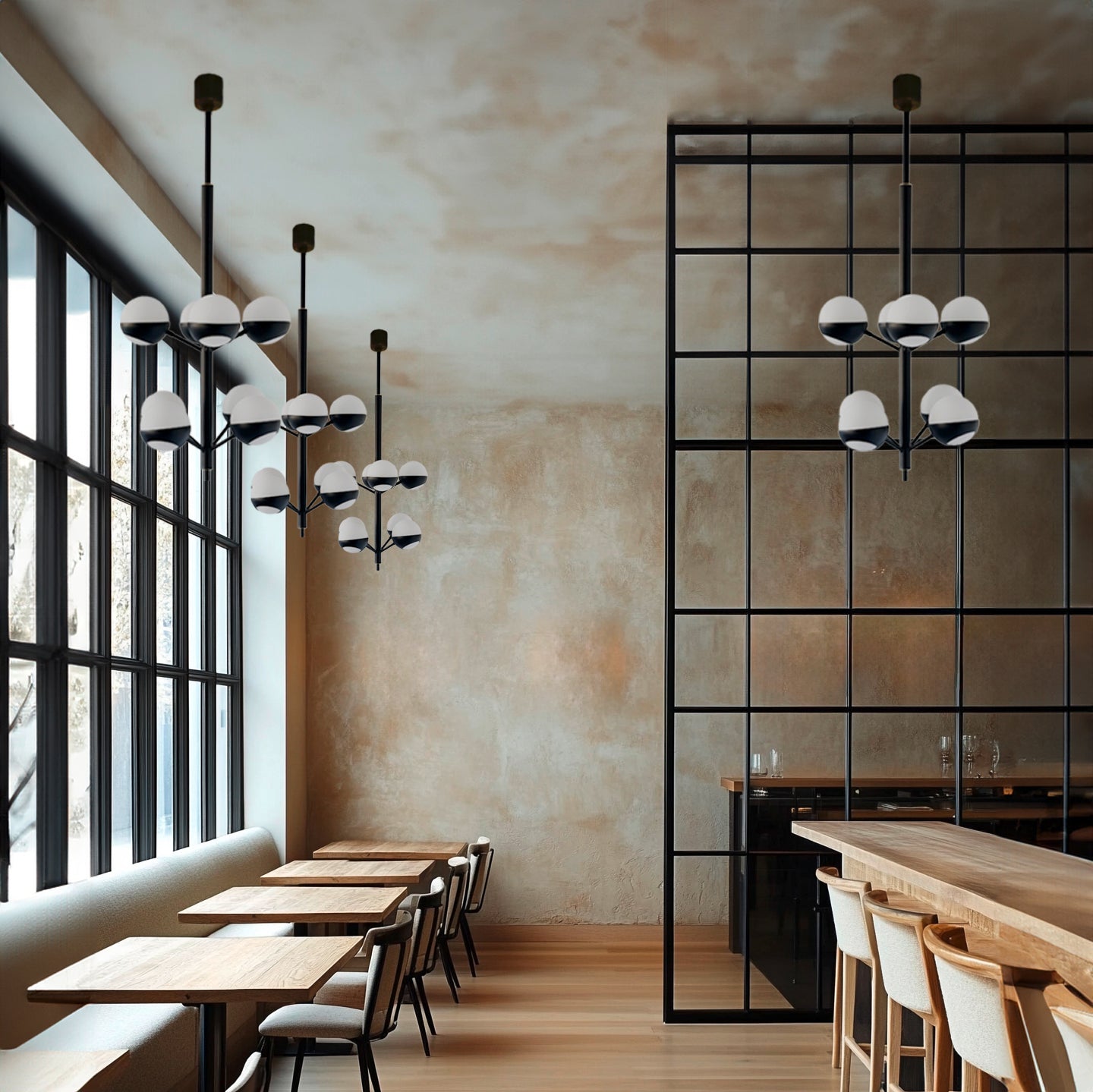 Illuminazione ottimale e confortevole - Sfere luminose in vetro opalino per una luce diffusa e armoniosa. Evita ombre fastidiose e riduce l’abbagliamento. Crea un’atmosfera accogliente, perfetta per il relax e la produttività.